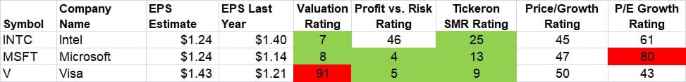 The only two areas of concern are Visa’s valuation rating and Microsoft’s P/E Growth rating. I should also point out that Intel is expected to see earnings decline for the third quarter of 2019 compared to 2018.