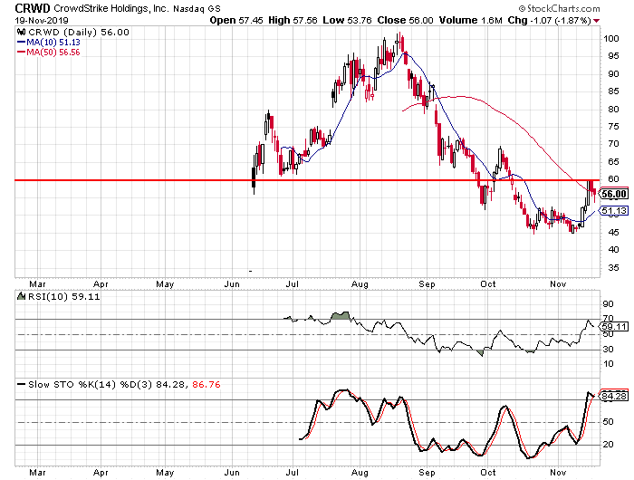 CrowdStrike Holdings (Nasdaq: CRWD) is an infrastructure software company that offers security solutions at different levels through its Falcon platform. CrowdStrike went public back on June 12 and the stock has been all over the board since it debuted. It jumped from around $60 to over $100 in August, only to fall back below the $50 level in the past few months.