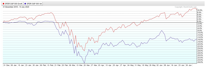 Right now, so far in 2020, growth is up 11.04% and value is down almost 15% for a difference of 26%. That is an insane disparity between the two.
