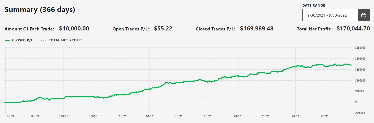 The robot's trading results are shown without using a margin. For a full trading statistics and equity chart, click on the "show more" button on the robot page. In the tab “Open Trades”, a user can see live how the AI Robot selects equities, enters, and exits in paper trades. In the tab “Closed trades”, a user can review all previous trades made by the AI Robot.