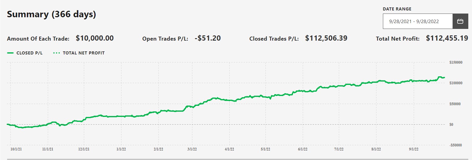 The robot's trading results are shown without using a margin. For a full trading statistics and equity chart, click on the "show more" button on the robot page. In the tab “Open Trades”, a user can see live how the AI Robot selects equities, enters, and exits in paper trades. In the tab “Closed trades”, a user can review all previous trades made by the AI Robot.