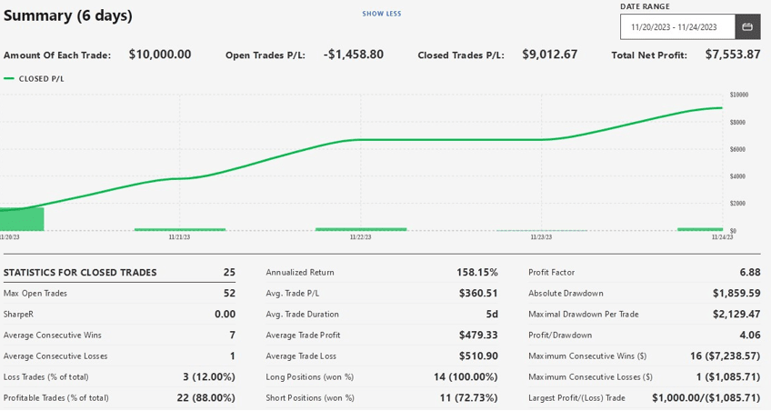 Optimal Gain Capitalization: Capitalizes on uptrends for maximum gains and strategically employs advanced hedging techniques during short-term market corrections.