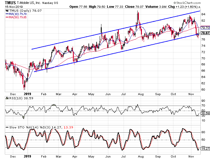 T-Mobile U.S. (Nasdaq: TMUS) has been in the news a lot lately. First it was the approval of its merger with Sprint that made the news and now it’s the fact that the CEO John Legere won't be leaving to assume the role as CEO of WeWork. While the company has gotten attention for these news stories, it got my attention on Friday because my own scans generated a bullish signal on the stock.