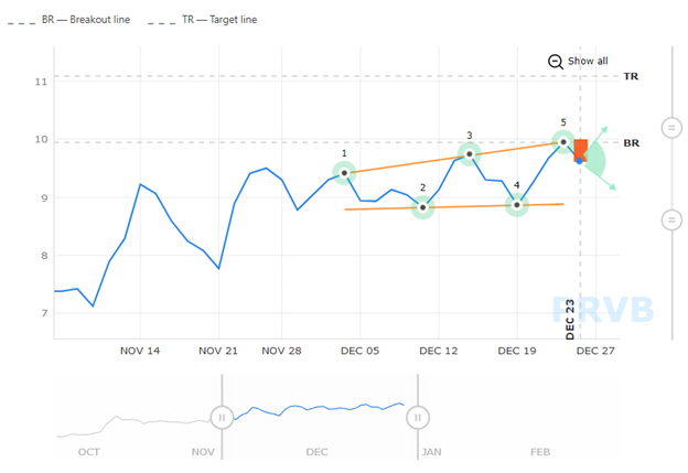 BUY signal for PRVB (Broadening Wedge Ascending)