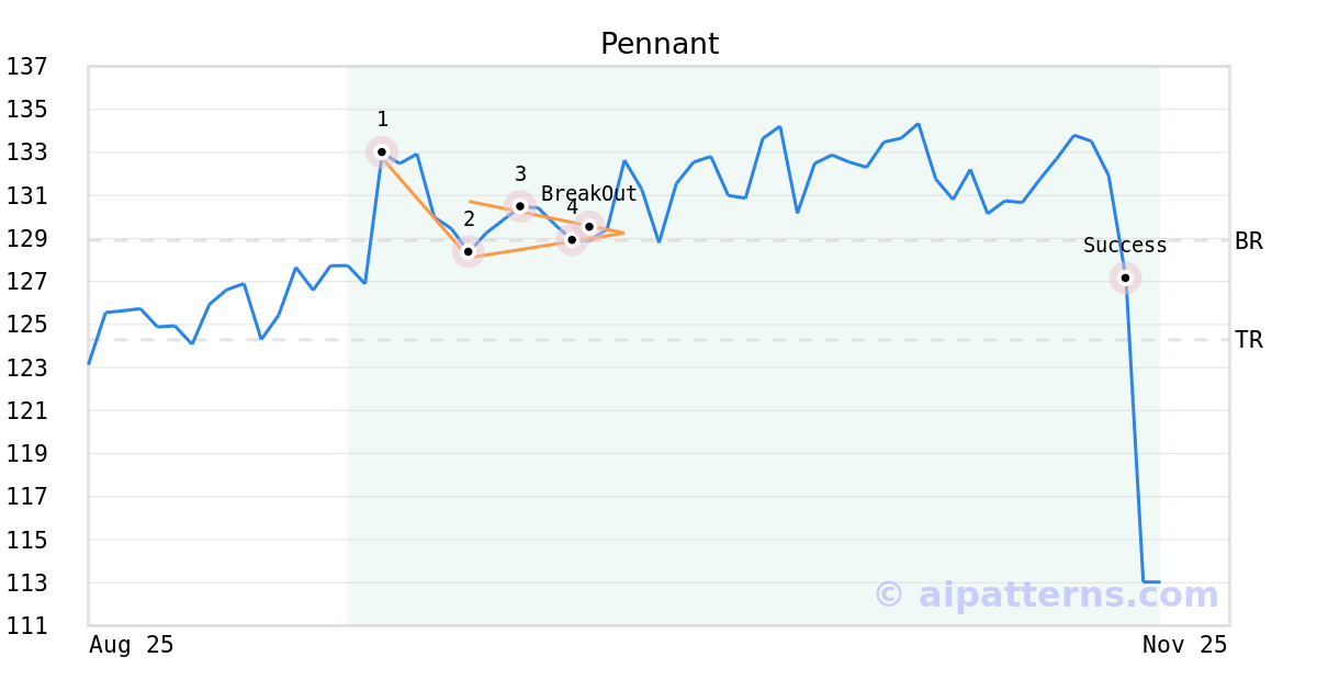 On October 06, 2025, A.I.dvisor detected a Pennant Pattern (Bearish) for Aecom (ACM, $129.52). On October 06, 2025, A.I.dvisor confirmed the Bearish pattern, setting a target price of the stock. On November 18, 2025, the stock hit the target price of $124.29 – resulting in a gain for traders who shorted the stock on the pattern detection date.