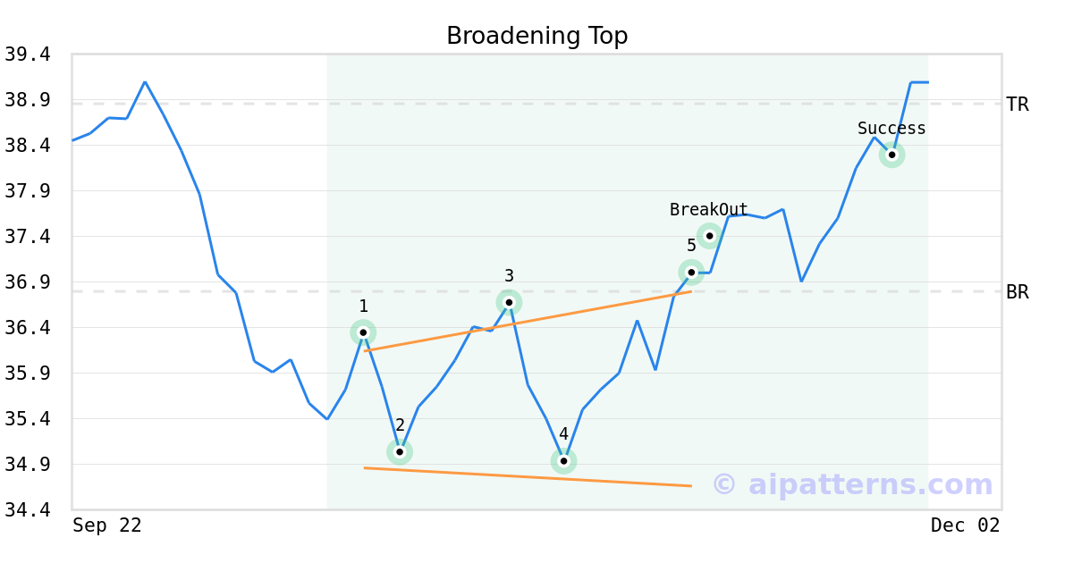 On November 07, 2025, A.I.dvisor detected a Broadening Top Pattern (Bullish) for Enact Holdings (ACT, $36.80). On November 10, 2025, A.I.dvisor confirmed the Bullish pattern, setting a target price of $38.85. 14 days later, on November 24, 2025, ACT reached the target price resulting in a for traders who took a long position in the stock.