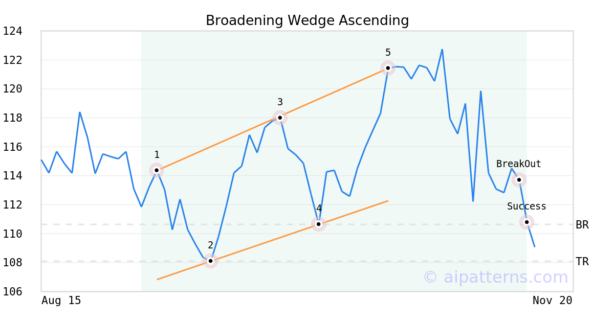 On October 20, 2025, A.I.dvisor detected a Broadening Wedge Ascending Pattern (Bearish) for Addus HomeCare Corp (ADUS, $121.42). 23 days later, on November 12, 2025, A.I.dvisor confirmed the Bearish pattern, setting a target price of the stock. On November 13, 2025, the stock hit the target price of $108.10 – resulting in a gain for traders who shorted the stock on the pattern detection date.