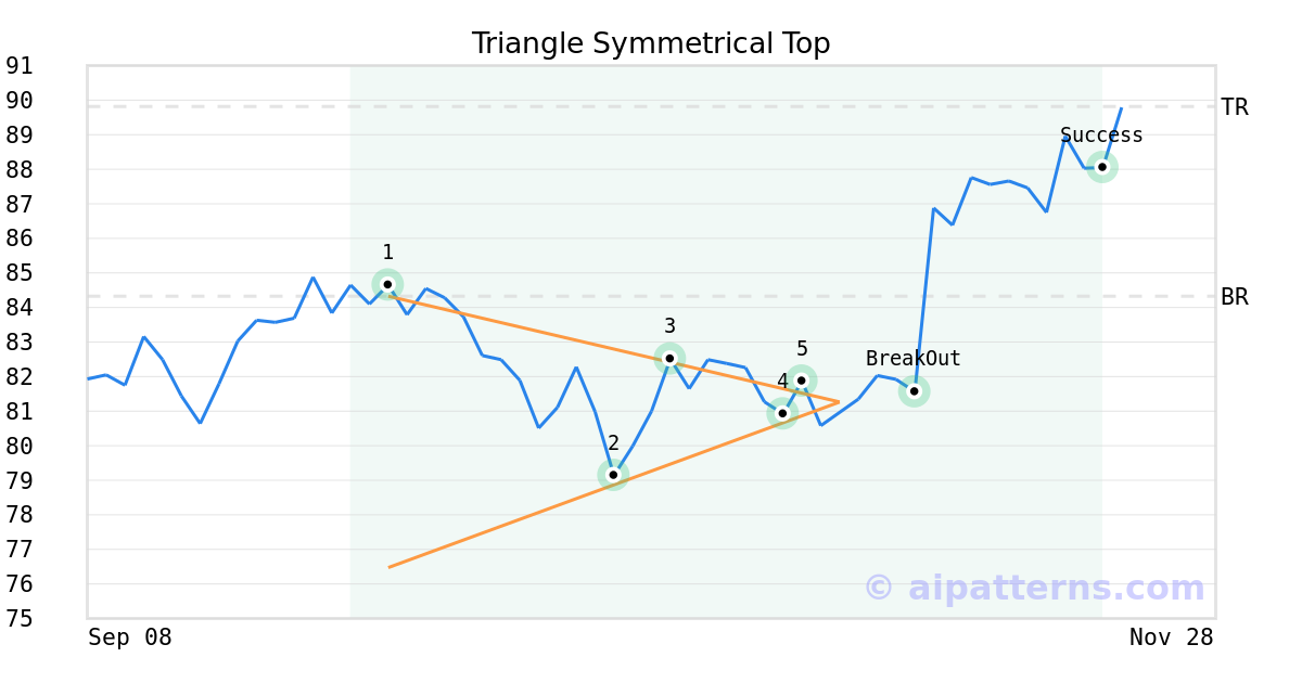 On October 30, 2025, A.I.dvisor detected a Triangle Symmetrical Top Pattern (Bullish) for Assured Guaranty Ltd (AGO, $81.56). On November 06, 2025, A.I.dvisor confirmed the Bullish pattern, setting a target price of $89.82. 14 days later, on November 20, 2025, AGO reached the target price resulting in a for traders who took a long position in the stock.