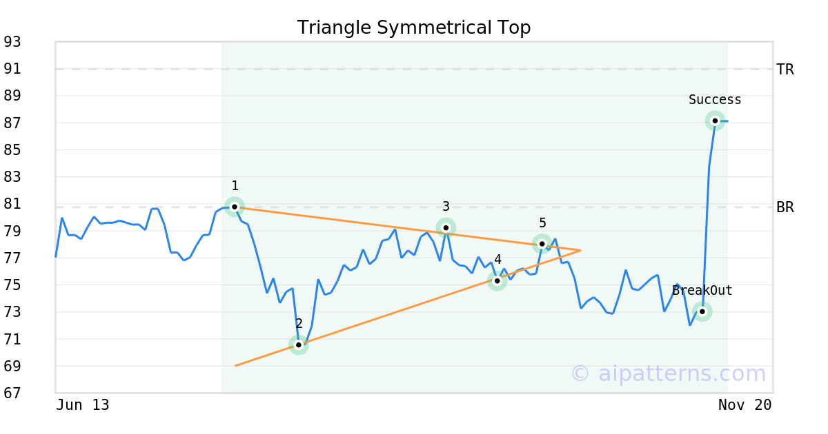 On October 02, 2025, A.I.dvisor detected a Triangle Symmetrical Top Pattern (Bullish) for Akamai Technologies (AKAM, $78.01). On November 06, 2025, A.I.dvisor confirmed the Bullish pattern, setting a target price of $90.97. 4 days later, on November 10, 2025, AKAM reached the target price resulting in a +1 for traders who took a long position in the stock.
