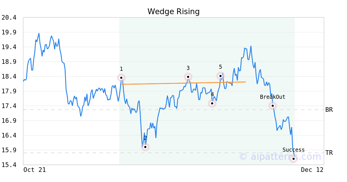 On July 25, 2025, A.I.dvisor detected a Wedge Rising Pattern (Bearish) for Alexander & Baldwin (ALEX, $18.19). 73 days later, on October 06, 2025, A.I.dvisor confirmed the Bearish pattern, setting a target price of the stock. On November 03, 2025, the stock hit the target price of $15.81 – resulting in a +1 gain for traders who shorted the stock on the pattern detection date.