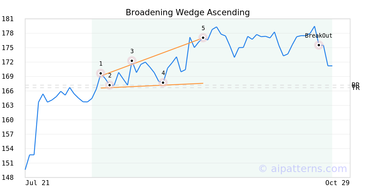 On September 16, 2025, A.I.dvisor detected a Broadening Wedge Ascending Pattern (Bearish) for Allegion Public Limited (ALLE, $177.04). 36 days later, on October 22, 2025, A.I.dvisor confirmed the Bearish pattern, setting a target price of the stock. On October 22, 2025, the stock hit the target price of $166.68 – resulting in a gain for traders who shorted the stock on the pattern detection date.