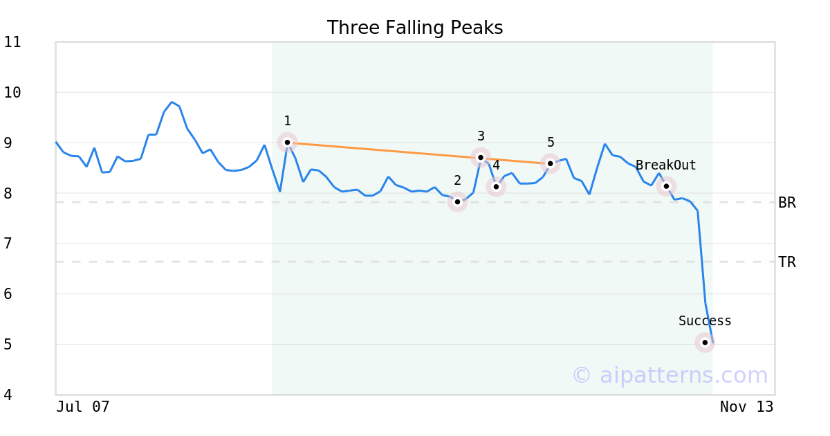 On October 06, 2025, A.I.dvisor detected a Three Falling Peaks Pattern (Bearish) for Alvotech (ALVO, $8.58). 21 days later, on October 27, 2025, A.I.dvisor confirmed the Bearish pattern, setting a target price of the stock. On November 03, 2025, the stock hit the target price of $6.64 – resulting in a +4 gain for traders who shorted the stock on the pattern detection date.