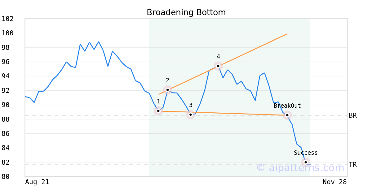 On November 11, 2025, A.I.dvisor detected a Broadening Bottom Pattern (Bearish) for ANI Pharmaceuticals (ANIP, $88.54). On November 11, 2025, A.I.dvisor confirmed the Bearish pattern, setting a target price of the stock. On November 17, 2025, the stock hit the target price of $81.70 – resulting in a gain for traders who shorted the stock on the pattern detection date.