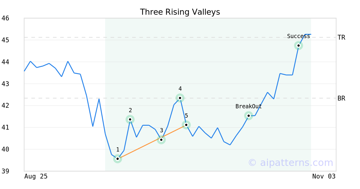 On October 01, 2025, A.I.dvisor detected a Three Rising Valleys Pattern (Bullish) for Artivion (AORT, $41.11). On October 15, 2025, A.I.dvisor confirmed the Bullish pattern, setting a target price of $45.12. 12 days later, on October 27, 2025, AORT reached the target price resulting in a for traders who took a long position in the stock.