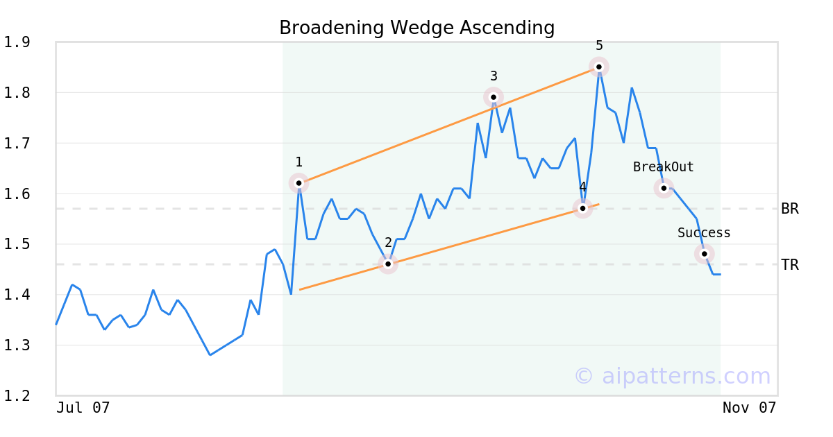 On October 09, 2025, A.I.dvisor detected a Broadening Wedge Ascending Pattern (Bearish) for Accuray (ARAY, $1.85). 12 days later, on October 21, 2025, A.I.dvisor confirmed the Bearish pattern, setting a target price of the stock. On October 28, 2025, the stock hit the target price of $1.46 – resulting in a +2 gain for traders who shorted the stock on the pattern detection date.