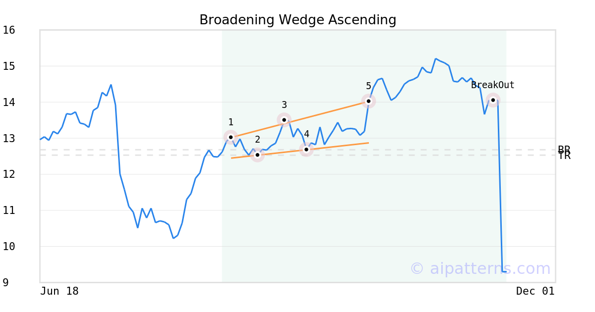 On October 03, 2025, A.I.dvisor detected a Broadening Wedge Ascending Pattern (Bearish) for Ardent Health Inc (ARDT, $14.02). 40 days later, on November 12, 2025, A.I.dvisor confirmed the Bearish pattern, setting a target price of the stock. On November 12, 2025, the stock hit the target price of $12.53 – resulting in a gain for traders who shorted the stock on the pattern detection date.