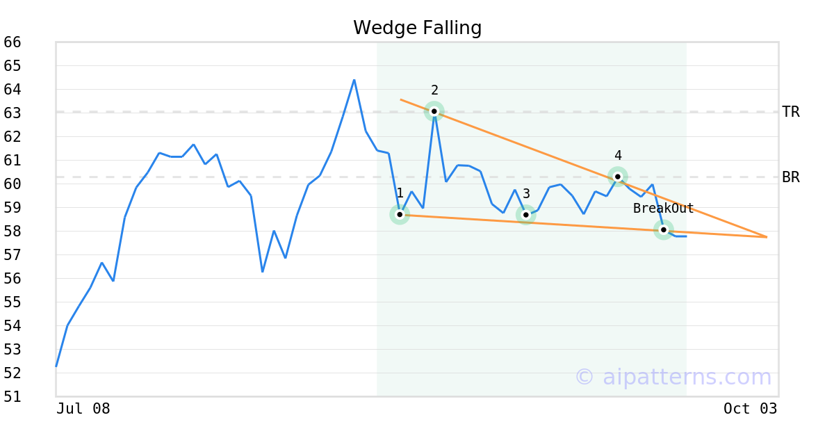 On September 22, 2025, A.I.dvisor detected a Wedge Falling Pattern (Bullish) for ARK 21Shares Digital Ass And Blc Str ETF (ARKD, $58.04). On September 22, 2025, A.I.dvisor confirmed the Bullish pattern, setting a target price of $63.06. On September 22, 2025, ARKD reached the target price resulting in a for traders who took a long position in the stock.