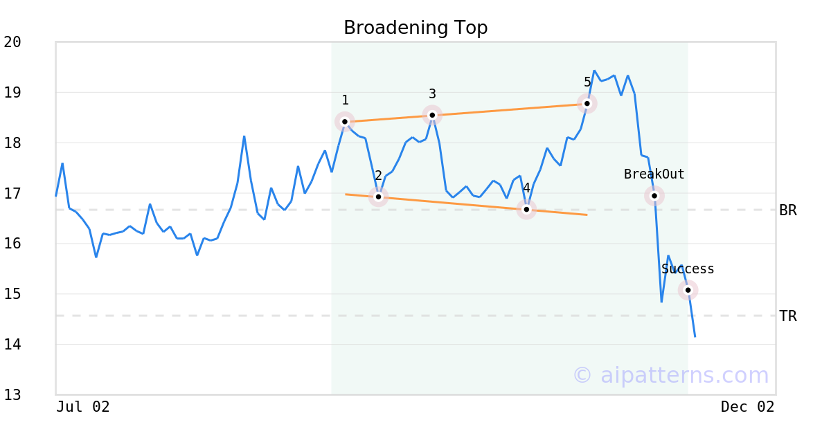 On October 23, 2025, A.I.dvisor detected a Broadening Top Pattern (Bearish) for Arlo Technologies (ARLO, $18.77). 14 days later, on November 06, 2025, A.I.dvisor confirmed the Bearish pattern, setting a target price of the stock. On November 13, 2025, the stock hit the target price of $14.57 – resulting in a +1 gain for traders who shorted the stock on the pattern detection date.