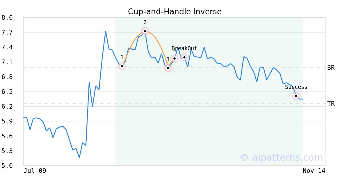 On September 12, 2025, A.I.dvisor detected a Cup-and-Handle Inverse Pattern (Bearish) for Arq (ARQ, $7.17). 5 days later, on September 17, 2025, A.I.dvisor confirmed the Bearish pattern, setting a target price of the stock. On November 04, 2025, the stock hit the target price of $6.26 – resulting in a +1 gain for traders who shorted the stock on the pattern detection date.