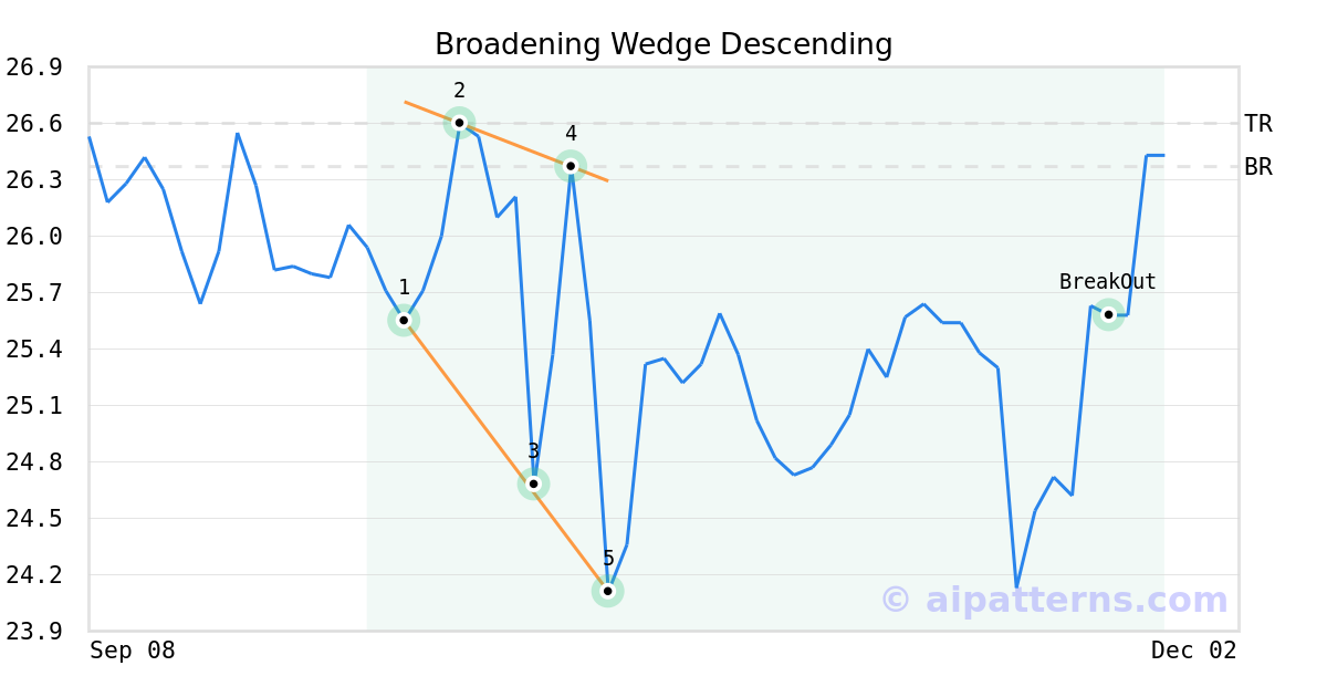 On October 16, 2025, A.I.dvisor detected a Broadening Wedge Descending Pattern (Bullish) for Associated Banc-Corp (ASB, $24.11). On November 24, 2025, A.I.dvisor confirmed the Bullish pattern, setting a target price of $26.60. On November 24, 2025, ASB reached the target price resulting in a for traders who took a long position in the stock.