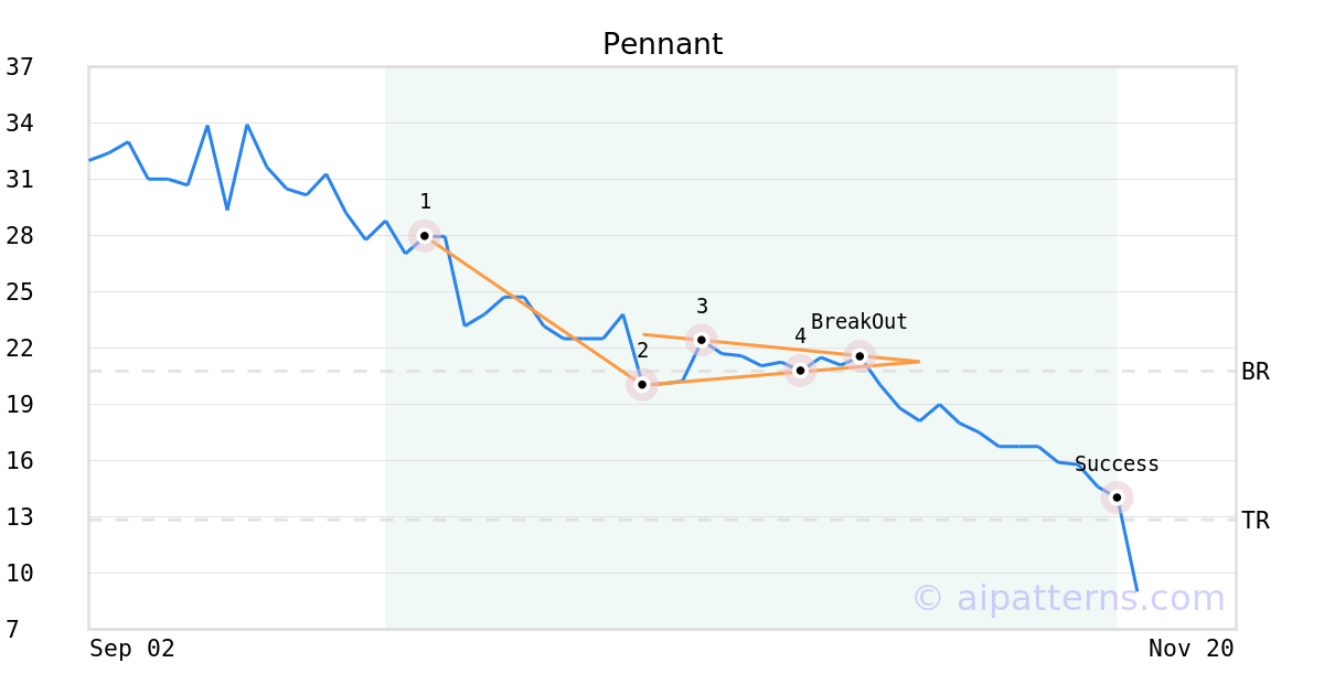 On October 27, 2025, A.I.dvisor detected a Pennant Pattern (Bearish) for Alpha Technology Group Limited (ATGL, $21.53). On October 27, 2025, A.I.dvisor confirmed the Bearish pattern, setting a target price of the stock. On November 13, 2025, the stock hit the target price of $12.84 – resulting in a +3 gain for traders who shorted the stock on the pattern detection date.