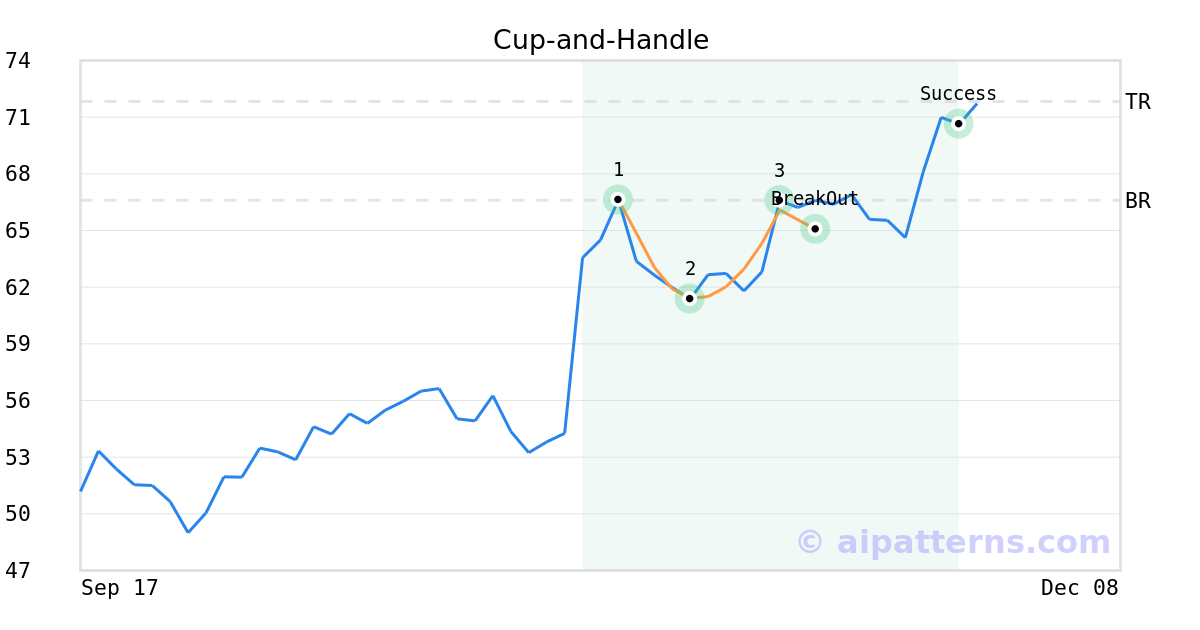 On November 13, 2025, A.I.dvisor detected a Cup-and-Handle Pattern (Bullish) for BridgeBio Pharma (BBIO, $65.06). On November 13, 2025, A.I.dvisor confirmed the Bullish pattern, setting a target price of $71.83. 12 days later, on November 25, 2025, BBIO reached the target price resulting in a for traders who took a long position in the stock.