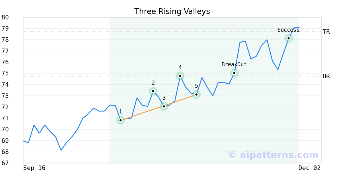 On October 30, 2025, A.I.dvisor detected a Three Rising Valleys Pattern (Bullish) for Virtus LifeSci Biotech Products ETF (BBP, $73.10). On November 10, 2025, A.I.dvisor confirmed the Bullish pattern, setting a target price of $78.72. 14 days later, on November 24, 2025, BBP reached the target price resulting in a for traders who took a long position in the stock.