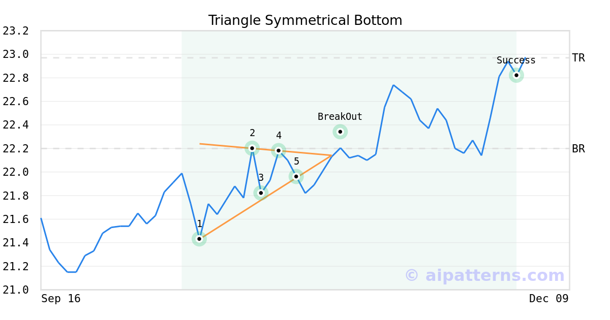 On October 27, 2025, A.I.dvisor detected a Triangle Symmetrical Bottom Pattern (Bullish) for abrdn Blmb AllCmdStrK1Fr ETF (BCI, $21.96). On November 03, 2025, A.I.dvisor confirmed the Bullish pattern, setting a target price of $22.97. 29 days later, on December 02, 2025, BCI reached the target price resulting in a for traders who took a long position in the stock.