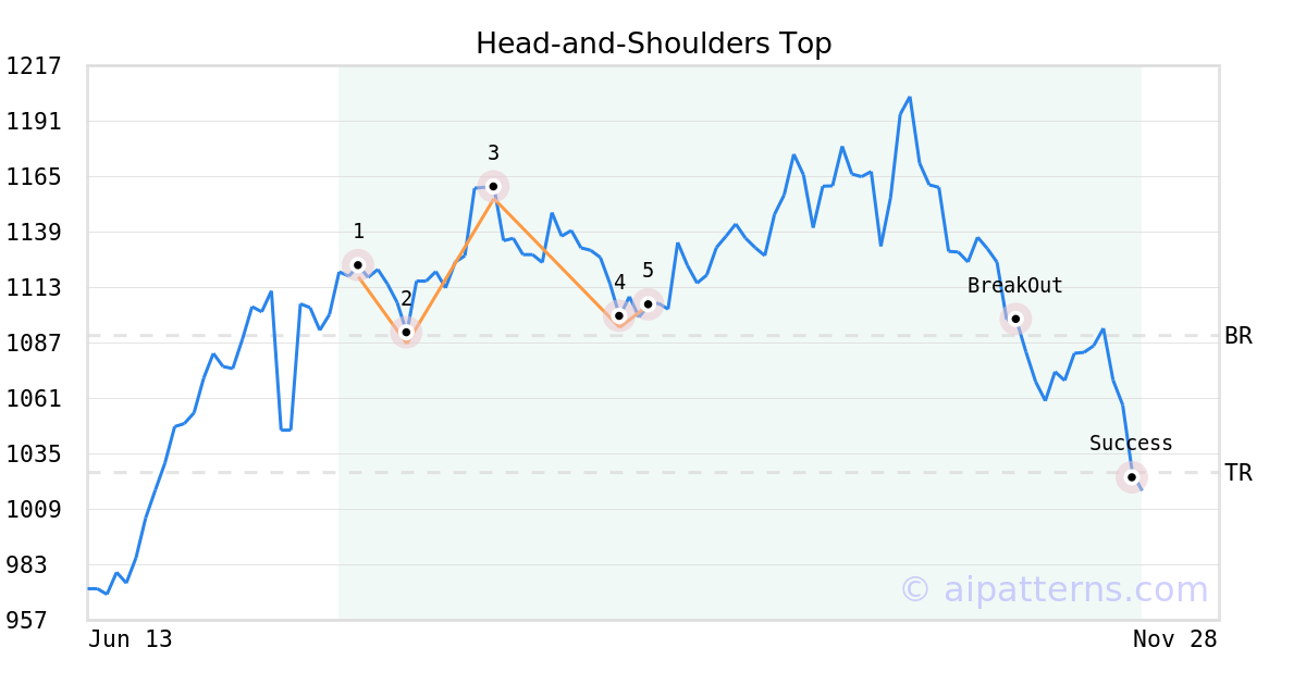 On September 08, 2025, A.I.dvisor detected a Head-and-Shoulders Top Pattern (Bearish) for Blackrock (BLK, $1104.92). 52 days later, on October 30, 2025, A.I.dvisor confirmed the Bearish pattern, setting a target price of the stock. On November 17, 2025, the stock hit the target price of $1026.29 – resulting in a gain for traders who shorted the stock on the pattern detection date.