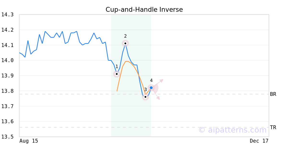 A.I.dvisor detected a bearish Cup-and-Handle Inverse pattern for BLW stock. This pattern was detected on October 21, 2025 . The odds of reaching the target price are 6.
