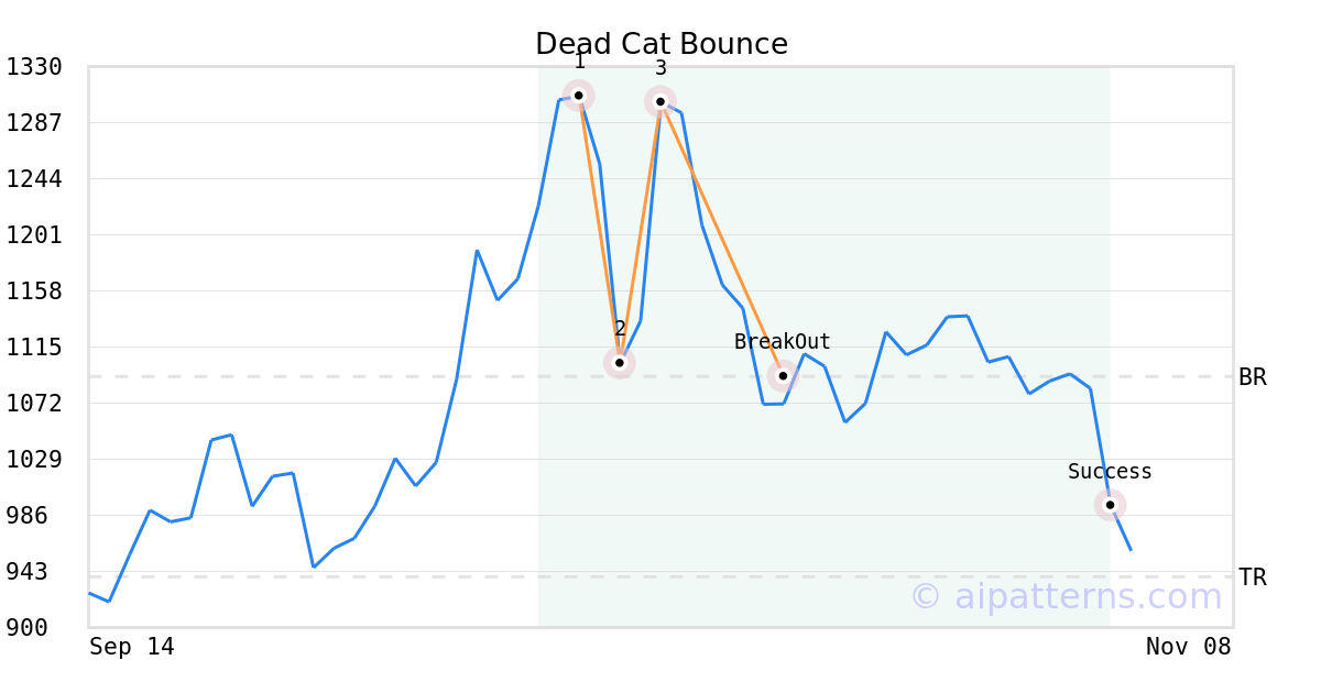 On October 18, 2025, A.I.dvisor detected a Dead Cat Bounce Pattern (Bearish) for BNB cryptocurrency (BNB.X, $1093.152000). On October 18, 2025, A.I.dvisor confirmed the Bearish pattern, setting a target price of the stock. On November 03, 2025, the stock hit the target price of $938.867500 – resulting in a gain for traders who shorted the stock on the pattern detection date.