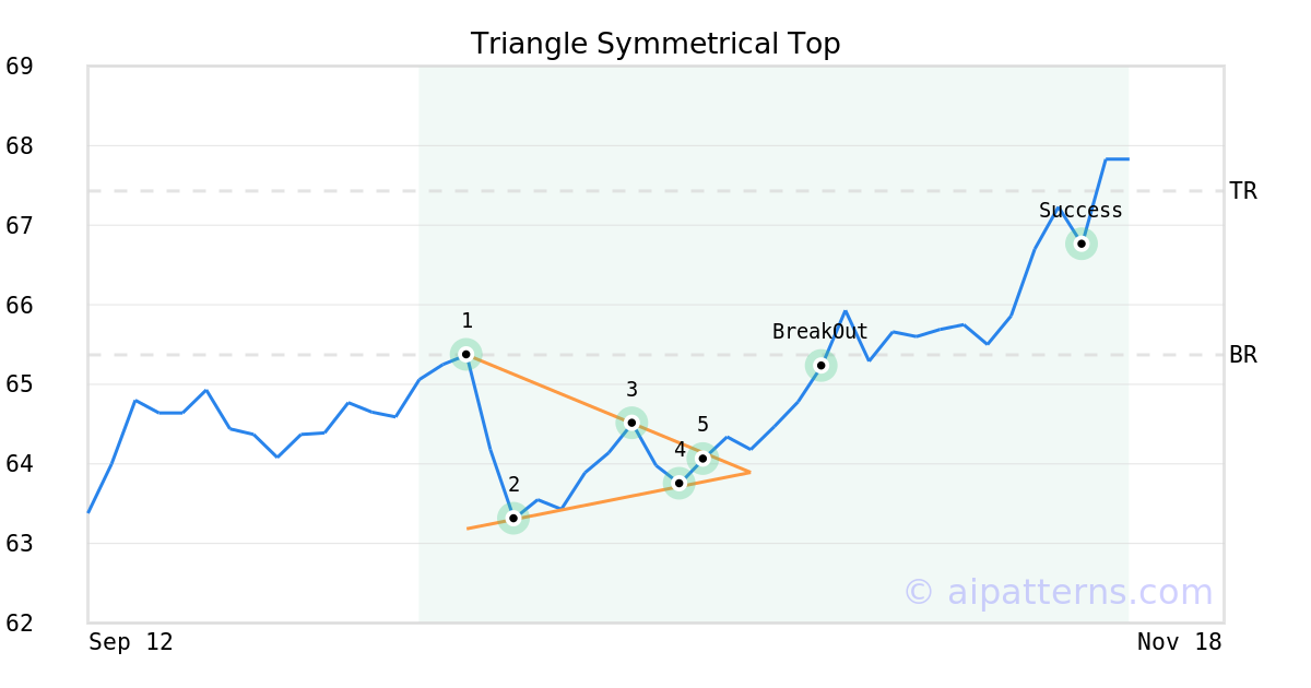 On October 20, 2025, A.I.dvisor detected a Triangle Symmetrical Top Pattern (Bullish) for Bank of Nova Scotia (BNS, $64.06). On October 27, 2025, A.I.dvisor confirmed the Bullish pattern, setting a target price of $67.43. 15 days later, on November 11, 2025, BNS reached the target price resulting in a for traders who took a long position in the stock.