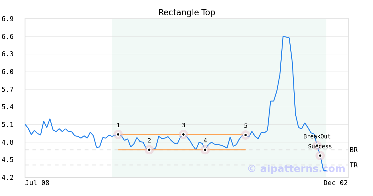 On October 16, 2025, A.I.dvisor detected a Rectangle Top Pattern (Bearish) for B.O.S. Better Online Solutions (BOSC, $4.92). 33 days later, on November 18, 2025, A.I.dvisor confirmed the Bearish pattern, setting a target price of the stock. On November 19, 2025, the stock hit the target price of $4.41 – resulting in a gain for traders who shorted the stock on the pattern detection date.