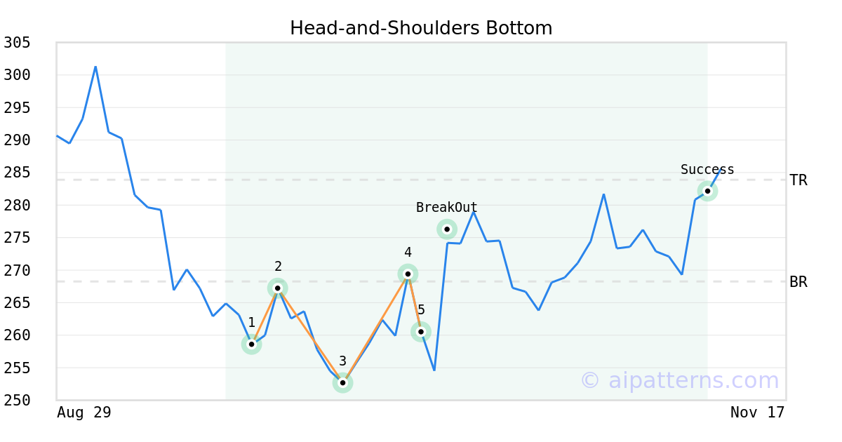 On October 09, 2025, A.I.dvisor detected a Head-and-Shoulders Bottom Pattern (Bullish) for Burlington Stores (BURL, $260.47). On October 13, 2025, A.I.dvisor confirmed the Bullish pattern, setting a target price of $283.89. 28 days later, on November 10, 2025, BURL reached the target price resulting in a for traders who took a long position in the stock.
