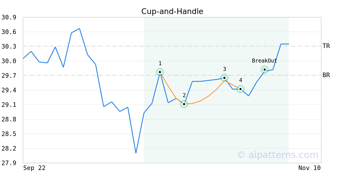 On October 29, 2025, A.I.dvisor detected a Cup-and-Handle Pattern (Bullish) for CBL & Associates Properties (CBL, $29.42). On November 03, 2025, A.I.dvisor confirmed the Bullish pattern, setting a target price of $30.31. On November 03, 2025, CBL reached the target price resulting in a for traders who took a long position in the stock.