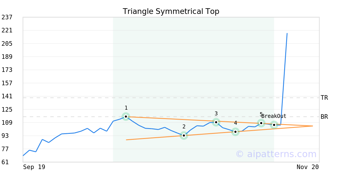 On November 11, 2025, A.I.dvisor detected a Triangle Symmetrical Top Pattern (Bullish) for Cidara Therapeutics (CDTX, $108.19). On November 13, 2025, A.I.dvisor confirmed the Bullish pattern, setting a target price of $139.18. On November 13, 2025, CDTX reached the target price resulting in a for traders who took a long position in the stock.