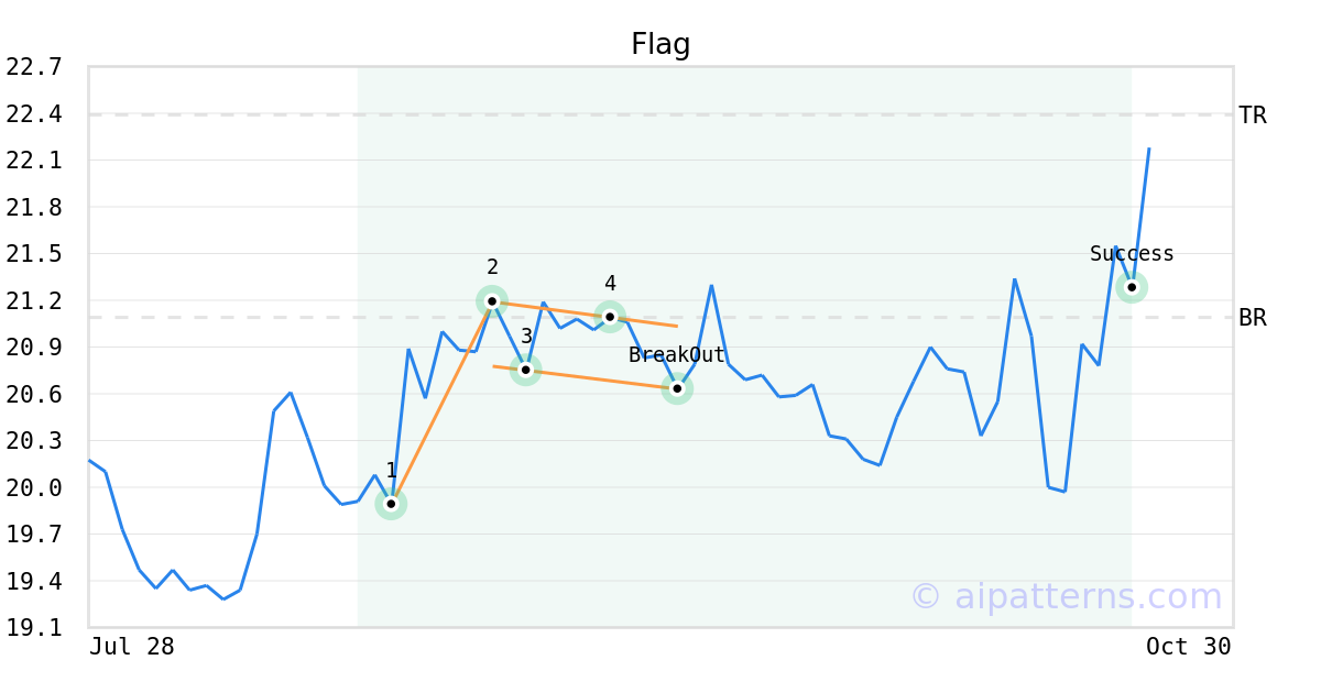 On September 16, 2025, A.I.dvisor detected a Flag Pattern (Bullish) for Civista Bancshares (CIVB, $20.63). On September 16, 2025, A.I.dvisor confirmed the Bullish pattern, setting a target price of $22.39. 37 days later, on October 23, 2025, CIVB reached the target price resulting in a for traders who took a long position in the stock.