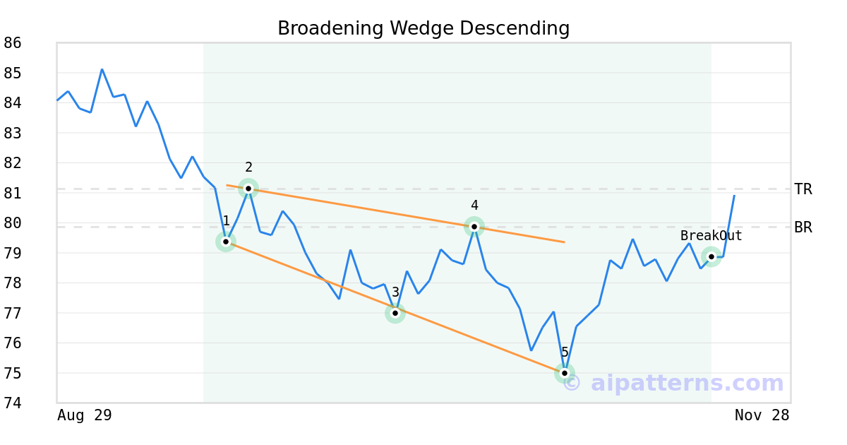 On November 03, 2025, A.I.dvisor detected a Broadening Wedge Descending Pattern (Bullish) for Colgate-Palmolive Company (CL, $74.98). On November 20, 2025, A.I.dvisor confirmed the Bullish pattern, setting a target price of $81.13. On November 20, 2025, CL reached the target price resulting in a for traders who took a long position in the stock.