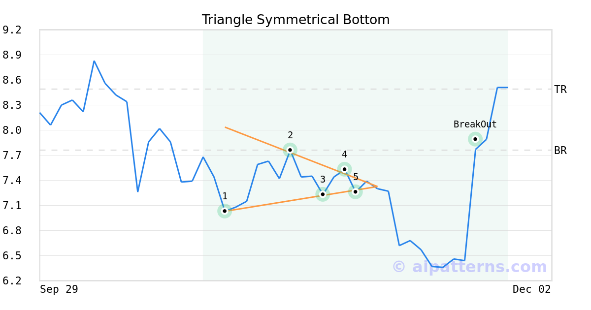 On November 07, 2025, A.I.dvisor detected a Triangle Symmetrical Bottom Pattern (Bullish) for Cheetah Mobile (CMCM, $7.26). On November 24, 2025, A.I.dvisor confirmed the Bullish pattern, setting a target price of $8.49. On November 24, 2025, CMCM reached the target price resulting in a for traders who took a long position in the stock.