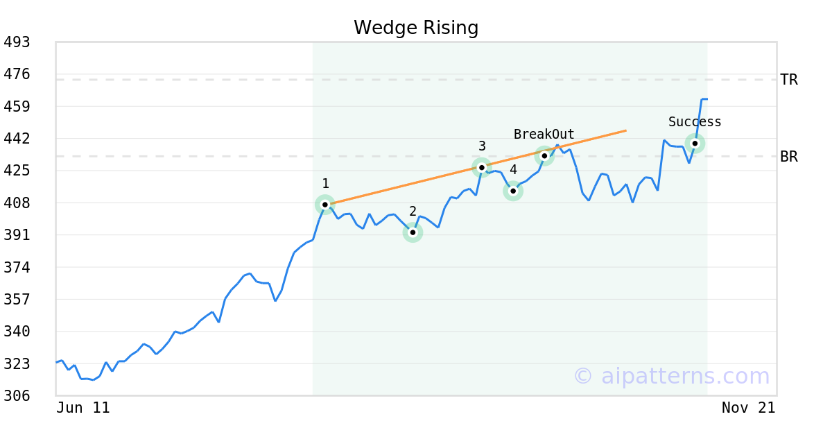On October 02, 2025, A.I.dvisor detected a Wedge Rising Pattern (Bullish) for Cummins (CMI, $432.59). On October 02, 2025, A.I.dvisor confirmed the Bullish pattern, setting a target price of $473.05. 34 days later, on November 05, 2025, CMI reached the target price resulting in a for traders who took a long position in the stock.