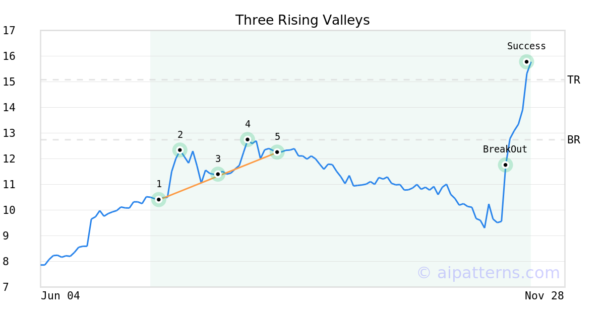 On August 25, 2025, A.I.dvisor detected a Three Rising Valleys Pattern (Bullish) for Cohen & Company (COHN, $12.25). On November 10, 2025, A.I.dvisor confirmed the Bullish pattern, setting a target price of $15.08. 7 days later, on November 17, 2025, COHN reached the target price resulting in a +2 for traders who took a long position in the stock.