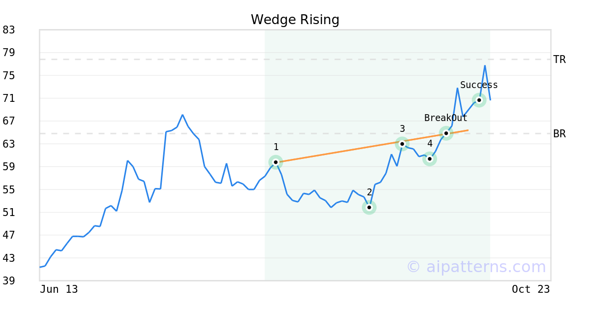The Tickeron PE Growth Rating for this company is (best 1 - 100 worst), pointing to slightly better than average earnings growth. The PE Growth rating is based on a comparative analysis of stock PE ratio increase over the last 12 months compared against S&P 500 index constituents.