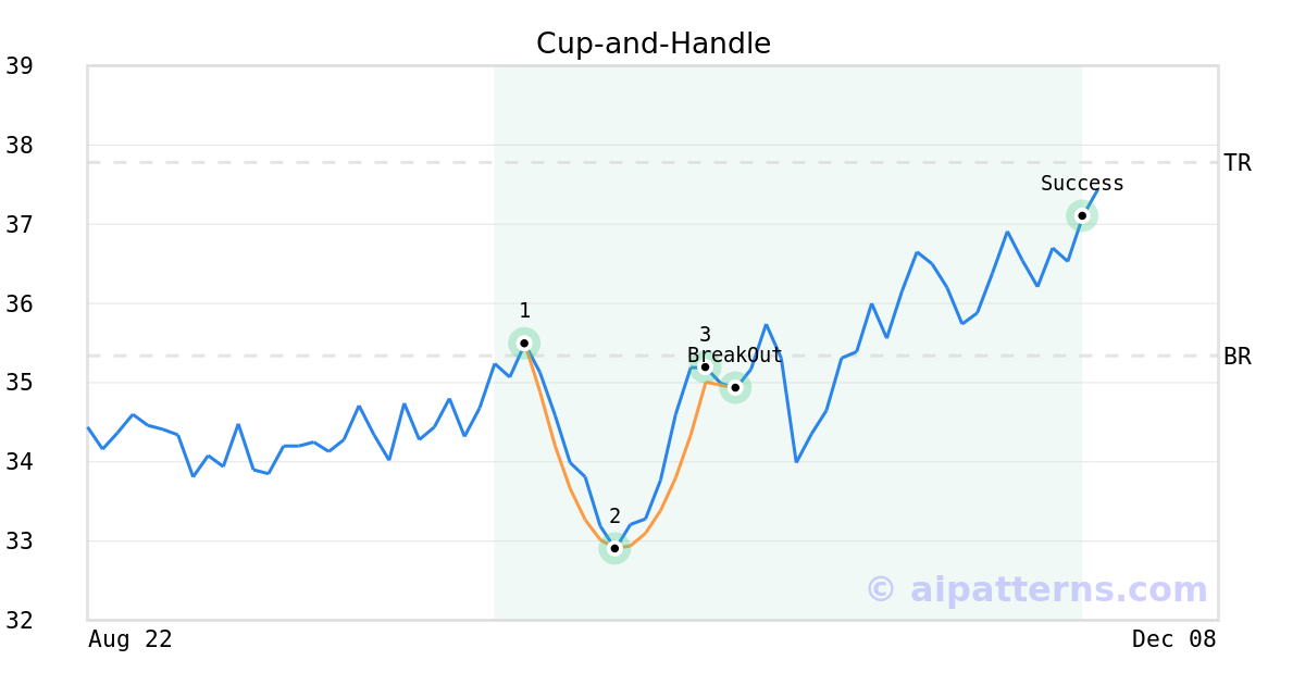 On October 23, 2025, A.I.dvisor detected a Cup-and-Handle Pattern (Bullish) for CareTrust REIT (CTRE, $34.93). On October 23, 2025, A.I.dvisor confirmed the Bullish pattern, setting a target price of $37.78. 33 days later, on November 25, 2025, CTRE reached the target price resulting in a for traders who took a long position in the stock.