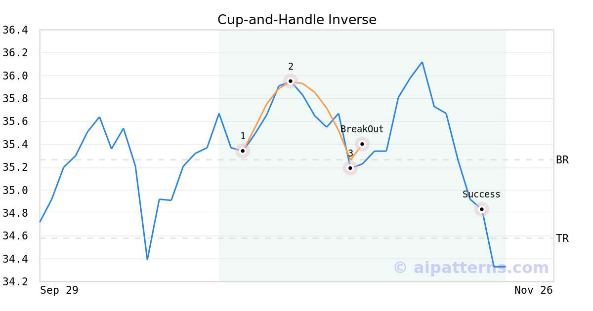 On November 05, 2025, A.I.dvisor detected a Cup-and-Handle Inverse Pattern (Bearish) for SPDR® MSCI ACWI ex-US ETF (CWI, $35.40). On November 05, 2025, A.I.dvisor confirmed the Bearish pattern, setting a target price of the stock. On November 19, 2025, the stock hit the target price of $34.58 – resulting in a gain for traders who shorted the stock on the pattern detection date.