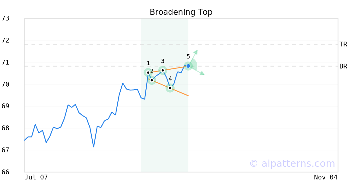 Following a 3-day Advance, the price is estimated to grow further. Considering data from situations where DFAW advanced for three days, in of 151 cases, the price rose further within the following month. The odds of a continued upward trend are .