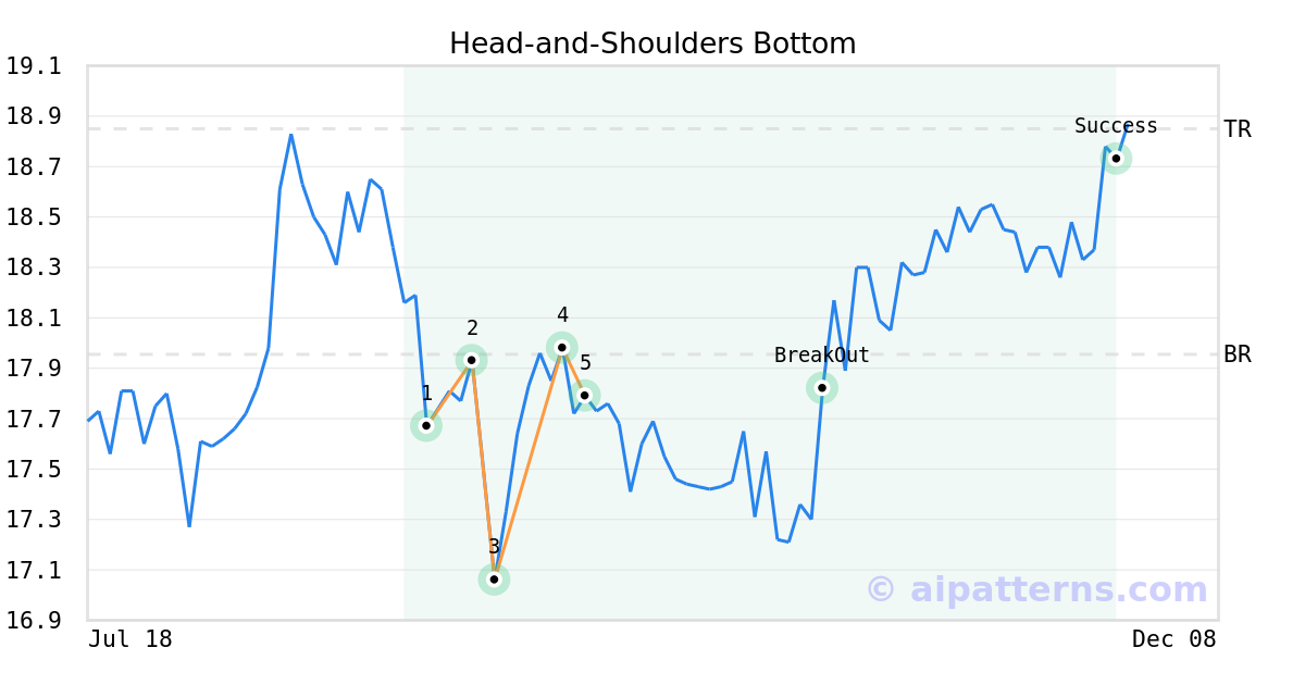 On September 19, 2025, A.I.dvisor detected a Head-and-Shoulders Bottom Pattern (Bullish) for iShares MSCI Indonesia ETF (EIDO, $17.79). On October 20, 2025, A.I.dvisor confirmed the Bullish pattern, setting a target price of $18.85. 36 days later, on November 25, 2025, EIDO reached the target price resulting in a for traders who took a long position in the stock.