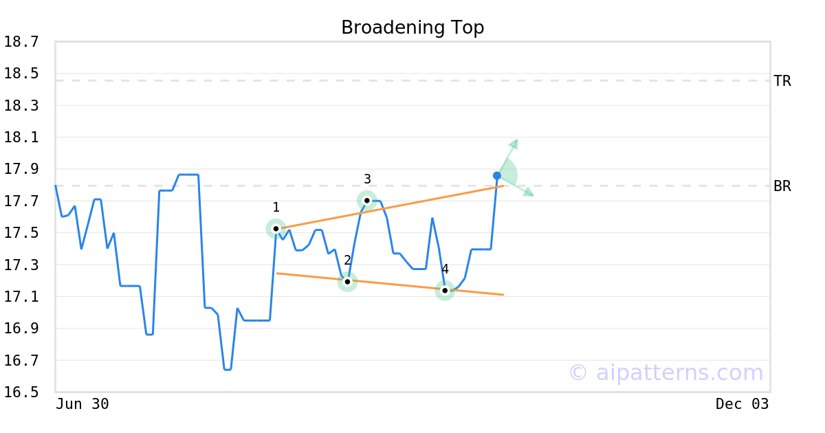 The Stochastic Oscillator may be shifting from an upward trend to a downward trend. In of 52 cases where EKG's Stochastic Oscillator exited the overbought zone, the price fell further within the following month. The odds of a continued downward trend are .