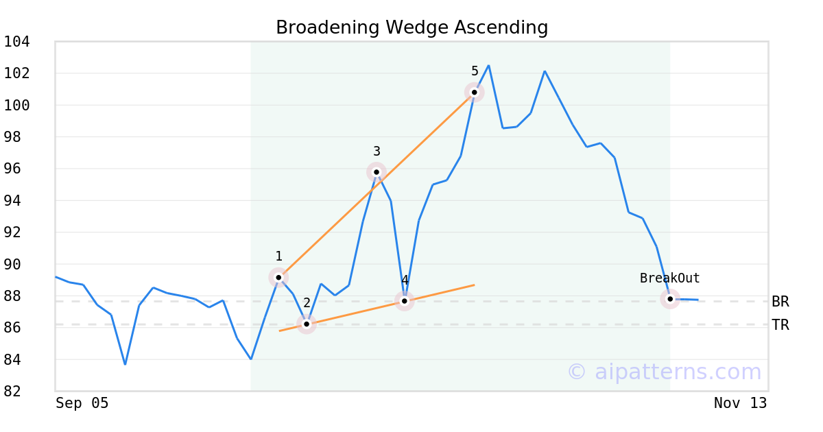 On October 17, 2025, A.I.dvisor detected a Broadening Wedge Ascending Pattern (Bearish) for Estee Lauder Companies (The) (EL, $100.78). 20 days later, on November 06, 2025, A.I.dvisor confirmed the Bearish pattern, setting a target price of the stock. On November 06, 2025, the stock hit the target price of $86.20 – resulting in a +1 gain for traders who shorted the stock on the pattern detection date.