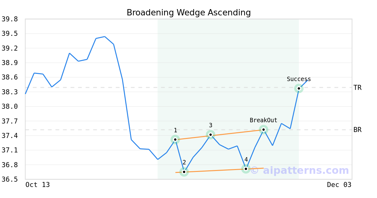 On November 19, 2025, A.I.dvisor detected a Broadening Wedge Ascending Pattern (Bullish) for VanEck Environmental Svcs ETF (EVX, $37.52). On November 19, 2025, A.I.dvisor confirmed the Bullish pattern, setting a target price of $38.39. 6 days later, on November 25, 2025, EVX reached the target price resulting in a for traders who took a long position in the stock.