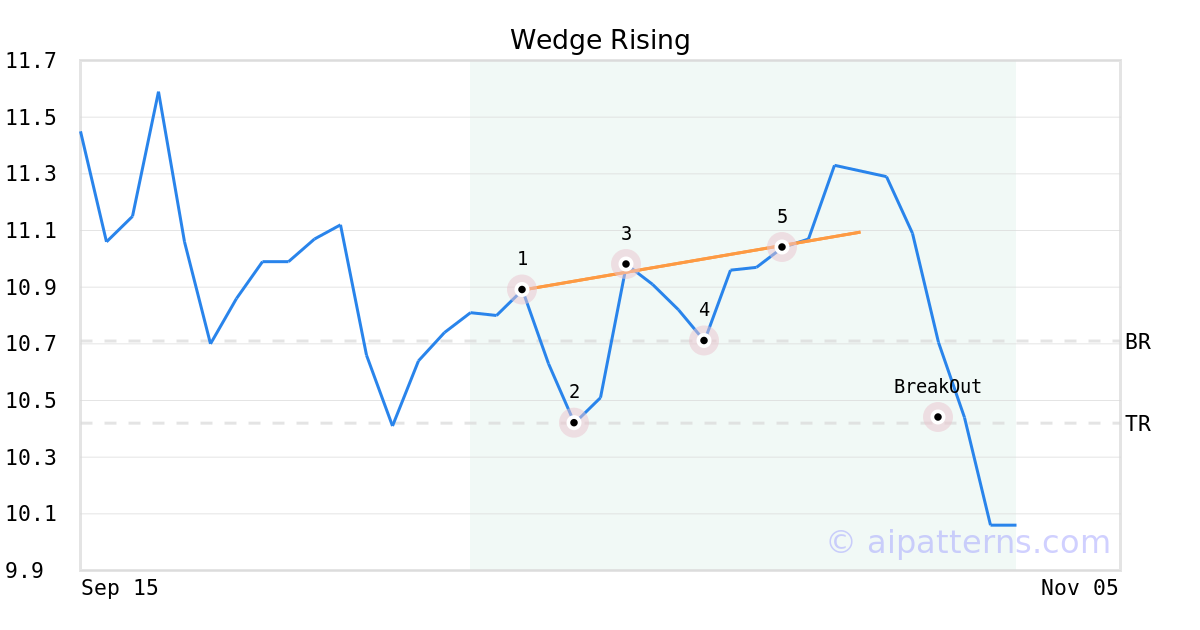 On October 22, 2025, A.I.dvisor detected a Wedge Rising Pattern (Bearish) for eXp World Holdings (EXPI, $11.04). 7 days later, on October 29, 2025, A.I.dvisor confirmed the Bearish pattern, setting a target price of the stock. On October 29, 2025, the stock hit the target price of $10.42 – resulting in a gain for traders who shorted the stock on the pattern detection date.